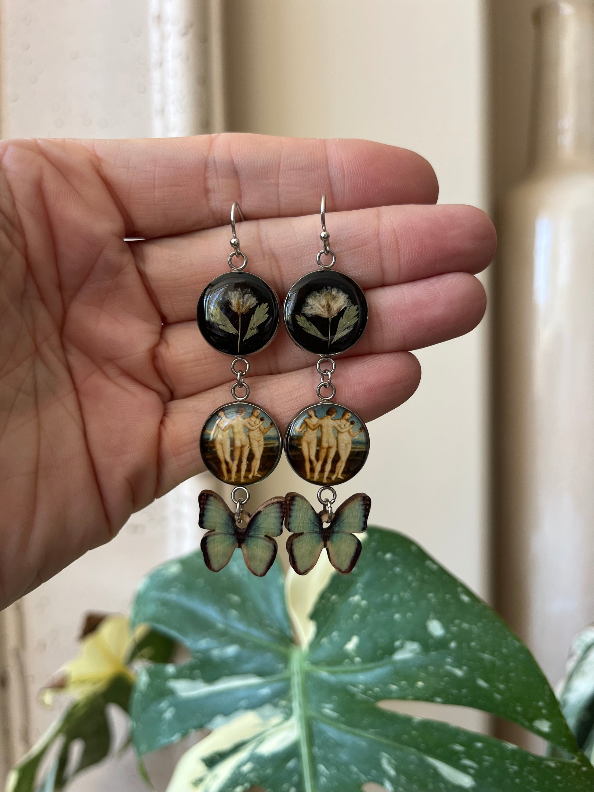 - The hooks can be exchanged for clip ons, extended lever hooks (for stretched ears), stainless steel hooks (for sensitive skin), or plastic hooks (for sensitive skin). Please make a note in the checkout.